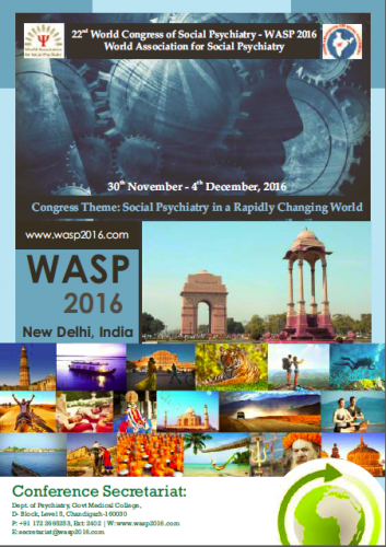 30 novembre au 4 décembre 2016 – 22ème Congrès mondial de Psychiatrie Sociale organisé par l’Association Mondiale de Psychiatrie Sociale – New Delhi, Inde
